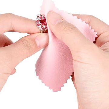 Ofrecemos un paño pulidor especial, impregnado con un químico que limpia y realza el brillo de tus joyas de oro y plata sin arañar ni dañar las piezas. No se lava, para conservar su efectividad y mantener tus joyas siempre radiantes. (8cm x 8cm)
